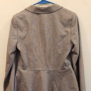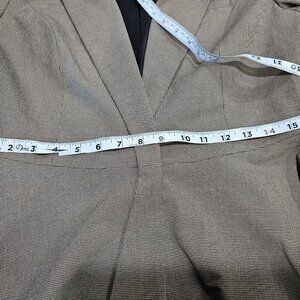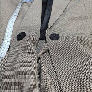 NWT Women's Doncaster Peplum Style Jacket Blazer Houndstooth Camel/Black Size 6. 49% Polyester, 49% Viscose and 2% Spandex. Laid flat measures approximately 8.5" armpit to armpit and 24" long. There are belt loops on the side of the jacket, as shown in last photo, but I do not have the belt. Smoke free home.