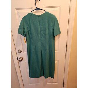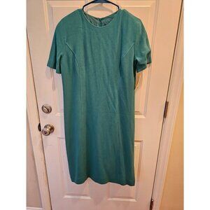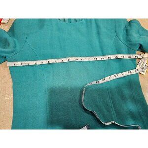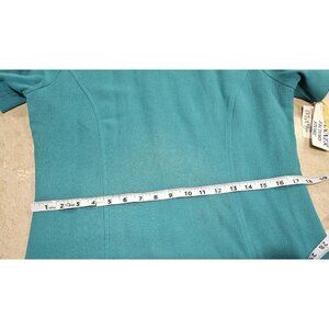 NWT Women's Doncaster Sheath Dress Size 12P Viscose Wool Blend Made in USA. 80% Viscose and 20% Wool. Back zipper closure. Shoulder pads are built in under the lining. The color on the tag is turquoise and this is on the greener end of turquoise. Laid flat measures approximately 19" armpit to armpit, 17.5" at waist and 42" long from top of shoulder to bottom hem.
