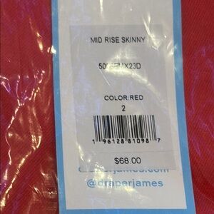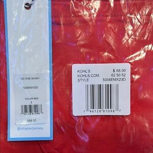NWT Women’s Draper James red Mid Rise Skinny pants Size 2