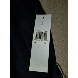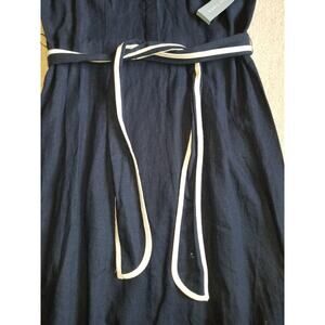 NWT Womens Dress-LONDON TIMES-navy linen 'Polished Preppy Classic Belt Shirt'-14