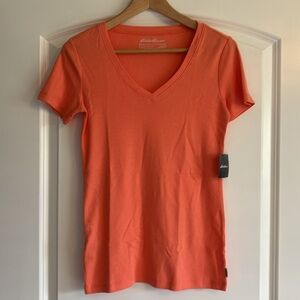 NWT Women's Eddie Bauer Favorite Short Sleeve, V-Neck dusty coral t-shirt, SMALL