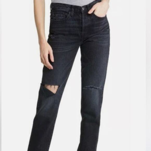 NWT Womens Edwin High Rise Ripped Distressed Black Jeans,100% Cotton,SZ 34