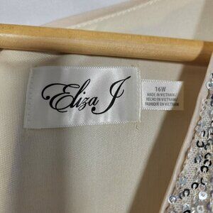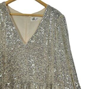 This stunning Eliza J dress features a full sequin design, tiered structure, and raglan sleeves. Perfect for special occasions.