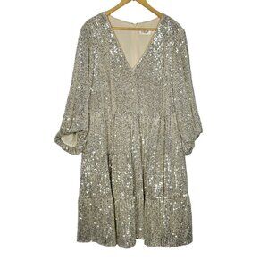 NWT Women's Eliza J Tiered Sequin Raglan Sleeve Dress Sz 16