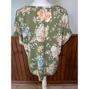 NWT Womens Emily Daniels Green Floral Short Sleeve Tie Front Blouse Size L