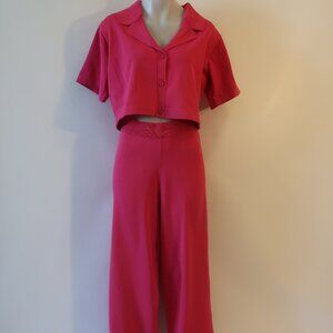 NWT Womens Endless Rose Sanctuary Hot Pink Loungewear Knit 2 Pc Set Top Pants M