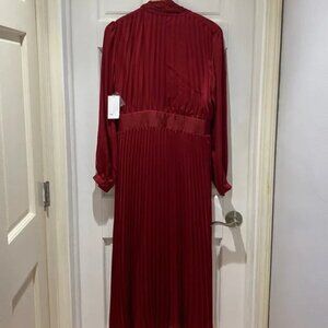 NWT Women’s Equipment Macin Red Wine Pleated Bow Midi Dress size 10