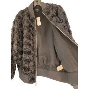 This Express jacket combines modern style with a luxurious textured rose design. Crafted from polyester, it offers a relaxed fit suitable for small to medium sizes, making it versatile for various ensembles. Its black color lends a timeless appeal, while the bomber style ensures a contemporary look.