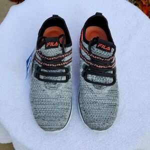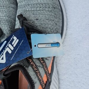 Elevate your running game with these NWT women's FILA Memory Realmspeed running shoes. Designed with comfort and style in mind, these sneakers feature a gray/peach colorway and 5RM00333-262 style. Perfect for women who love to run, these athletic shoes have a 7.5 US shoe size and are made with high-quality materials. With a brand that speaks for itself, these FILA sneakers are perfect for any woman who wants to look and feel great while running. Whether you're training for a marathon or just enjoy a leisurely jog, these shoes are the perfect addition to your running gear.