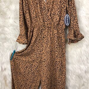 NWT Women’s Faux Wrap Jumpsuit, Leopard Print, Lightweight Poly, Wide Leg SZ M