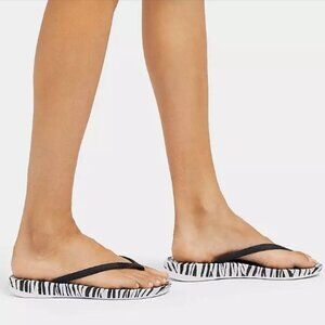 NWT Womens Fitflop Iqushion Flip Flops MSRP $38 Zebra print