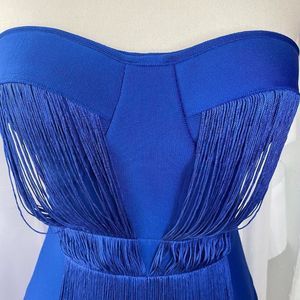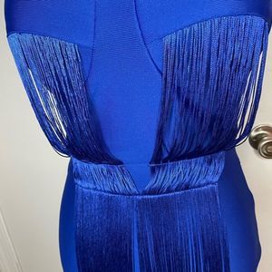 Royal Blue Dress featuring a sweetheart bustline, tassel accent,back zipper with hook and eye closure, padded bra, pics above are from medium measurements.
