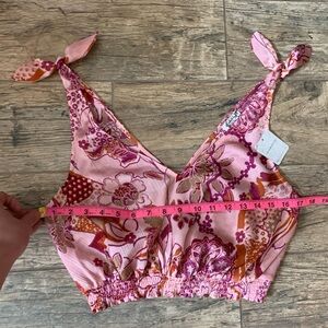 NWT Women’s Free People pink floral crop top with tie shoulder straps