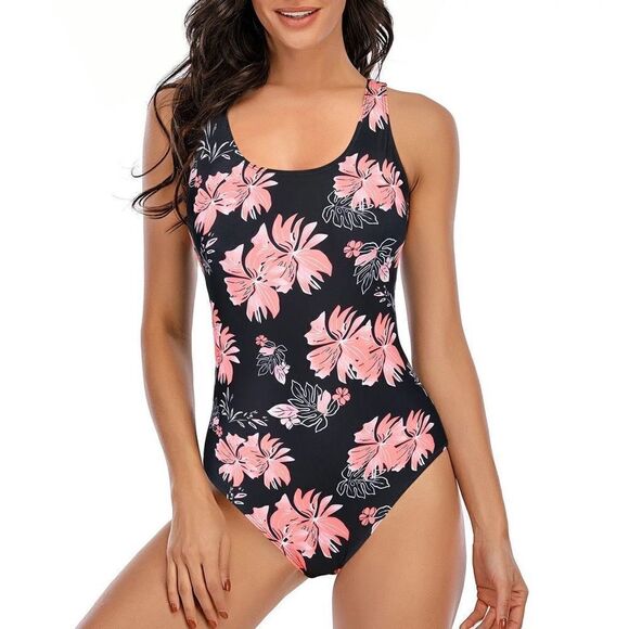 NWT Womens Funnygirl Tummy Control Tropical Floral Print Bathing Suit - Sz L