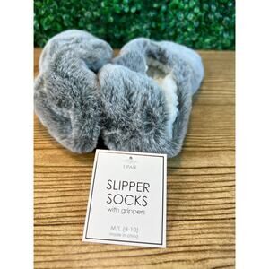 NWT Womens Fuzzy Cozy Slipper Socks Gray With Gripers Med Large Size 8 - 10 Gift