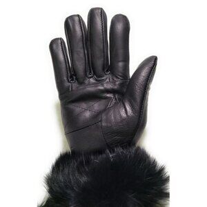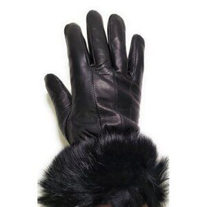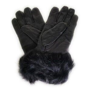 NWT Women's Genuine Leather Gloves with Faux Fur Cuff