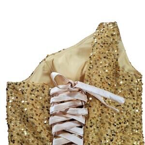 NWT Women's Gold Sequin Dress Short Formal Gown One Shoulder