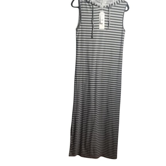 NWT Women's Exist Gray/White Nautical Maxi Dress Sz M. Ptp 18" and Length 53.5".
