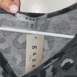 NWT Women’s Grey Leopard Print Drawstring Cropped Sweater