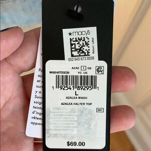 NWT. Guess. Light jean color halter top. Ties around the neck. Size large.
