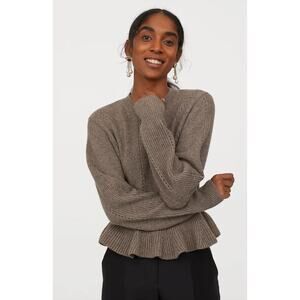 NWT Women's H&M Concious Knit Wool Peplum Sweater size XL in Chestnut Minimalist