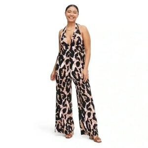 NWT Women's Halter Leopard Neutral Jumpsuit - DVF for Target XXL