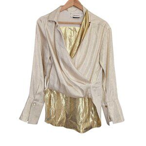 NWT Women's - Hellessy Gold Silk Long Sleeve Blouse, Size 4