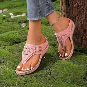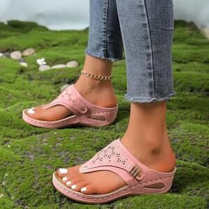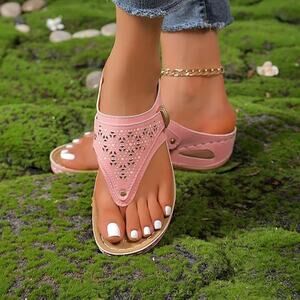 NWT ~ Women's Hippie Chic Pink Wedge Summer Boho Beach Flip Flops ~ Size 9 1/2