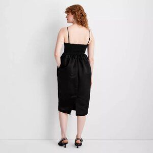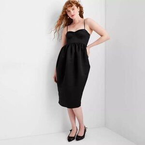 NWT Women's Holiday Sweetheart Bubble Satin Midi Dress - Future Collective BLACK