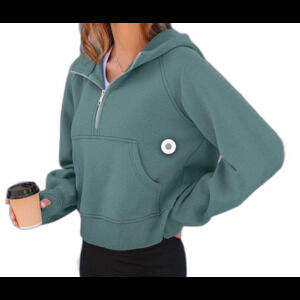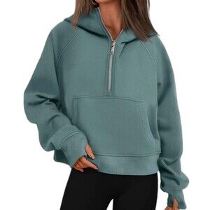 NWT Women's Hoodie Athleisure Cropped Qtr Zip Sweatshirt Top Pullover Green XL