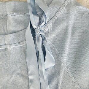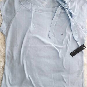 NWT Women's In Moda Blouse with Silk Bow, XL, Light Blue, Scoop Neck