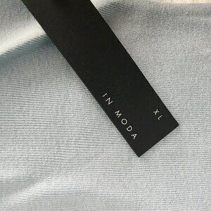 Elevate your wardrobe with the NWT Women's In Moda Blouse. Crafted from a luxuriously lightweight material, this blouse drapes beautifully for a relaxed, refined look. The scoop neckline and silk bow add a touch of feminine charm, making this the perfect piece to dress up or down. Look and feel your best in this versatile, brand new blouse.