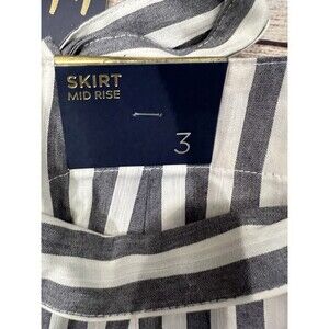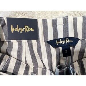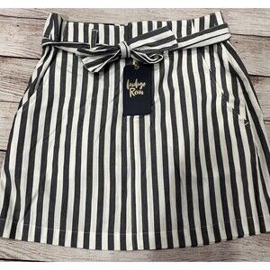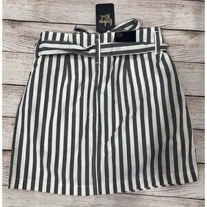 This NWT Women's Indigo Rein Cream & Taupe High Rise Mini Skirt is a stylish and versatile piece for any woman's wardrobe. The skirt features a zip closure, belted design, and pockets for added convenience. Made from a blended fabric of polyester, rayon, and cotton, it is lightweight and perfect for all seasons. The cream and taupe color scheme with a striped pattern adds a modern touch to the high rise, short style skirt. Ideal for travel, parties, or casual wear, this skirt is a fashionable choice for any occasion. 28 inch waist and 16 inches long. Smoke free home.