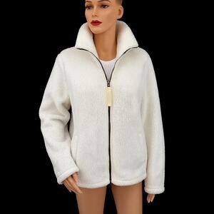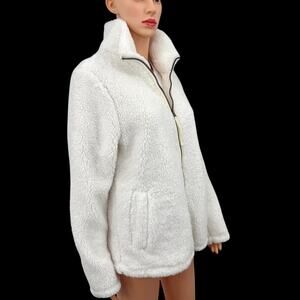 NWT Womens Ivory Teddy Sherpa Fleece Jacket Full Zip Stand Collar Lined Small