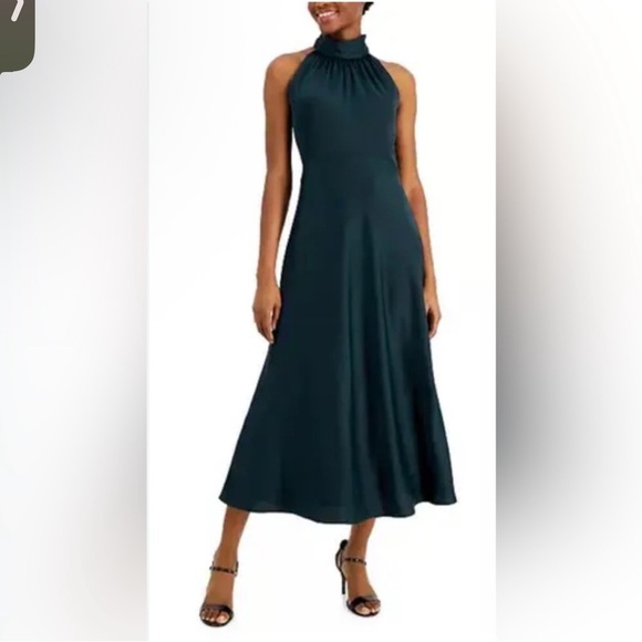 Women’s NWT Just Taylor emerald green satin feel halter neck midi dress- Size 14. Excellent condition, no flaws; brand new with tags. Special occasion, cocktail, event, wedding guest dress. See all photos, including measurements. Smoke free home. Fast shipping
