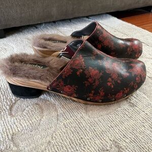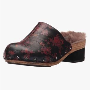NWT Womens Jambu Monaco Floral Leather Mule Clogs Studded Fur Wood Wine Sz 11