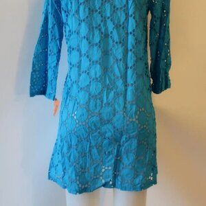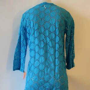 NWT Womens Jordan Taylor Aqua Blue Semi-Sheer V-Neck Swim Cover-Up Tunic Top M *