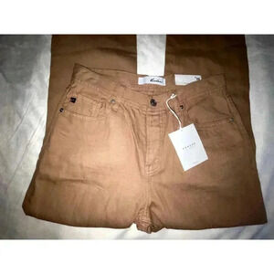 Introducing the Beige High Rise Straight Leg jeans - a versatile and trendy addition to your wardrobe. These jeans feature a high-rise waist and a straight leg silhouette, creating a flattering and timeless look. Made with a rigid stretchiness level, they provide a structured fit. The distressed details add a touch of edginess and character to the jeans. With five-pocket styling and unique hem details, they combine functionality and style effortlessly. These jeans are perfect for creating both casual and chic outfits with a fashionable twist.