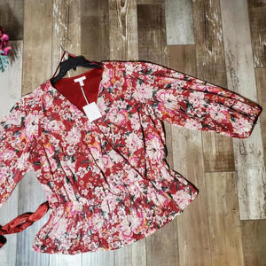 NWT Women's LC Lauren Conrad Puff Sleeve Sequin Wrap Top Size 2X