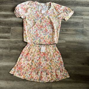 NWT Women's LC Lauren Conrad V-Neck Button Front Top and Skirt Set Floral