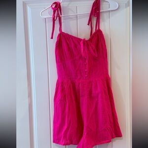 NWT Women’s LULUS Sincerely Flirty Hot Pink Textured Tie-Strap Button-Front Romper- Size medium. Excellent condition, brand new with tags attached. See all photos. Smoke free home. Fast shipping