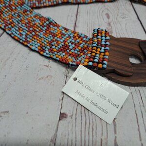 NWT Womens Lake Shore Drive Accessories Multi-color Glass Beads Belt Wood Large