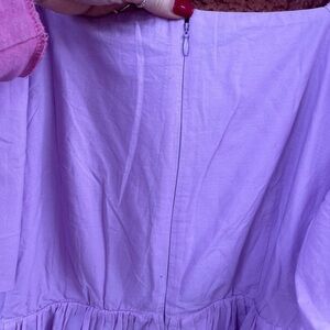 Eyelet hem with scalloped edge. Bust darts provide shape and the perfect fit. Lined through body. Cotton voile fabric. Hidden back zipper with hook & eye closure.