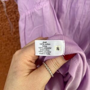 New with tags. Square neck with covered elastic at sleeve opening. Perfect flutter sleeves (slightly longer short sleeves for more coverage and total comfort). Seams on bodice. Pockets. Covered elastic at back waist.