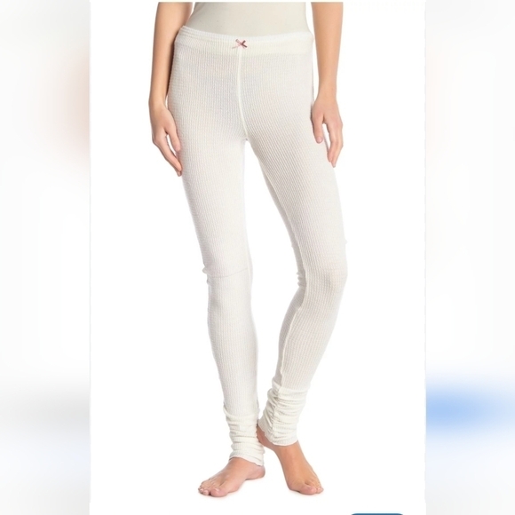 style with these waffle-knit leggings from Free People, styled with a cute little bow and ruched ankles.
