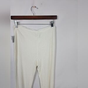 Waffle-knit fabric; contrast waistband; small bow detail at front; ruched at ankles