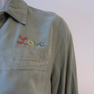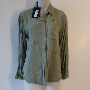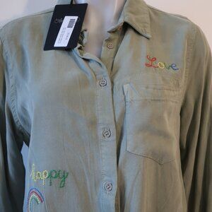NWT Womens Lauren Moshi Army Green Rainbow Sloan Hippie Girl Button Shirt Top S