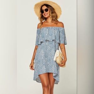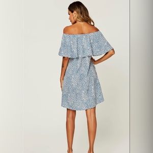 NWT FS Collection Women's Leopard Print Bardot Frill Off Shoulder Mini Dress In Blue - MEDIUM