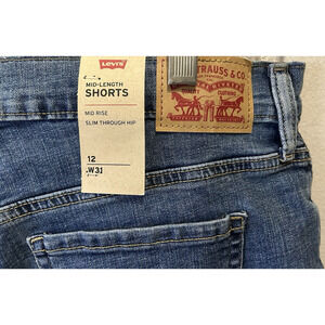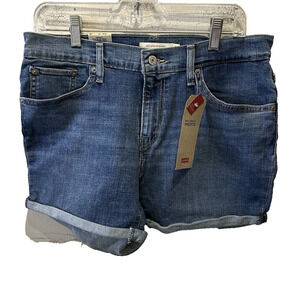 For sale is NWT Women’s Levi’s Medium Blue Denim Jeans Cuffed Cotton Shorts in Size 12 Large.