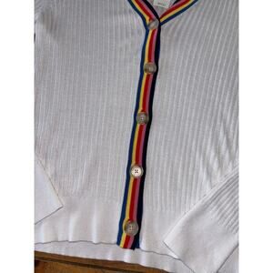 NWT Womens Loft Rainbow White Ribbed Cardigan Sweater Lightweight Pride Large